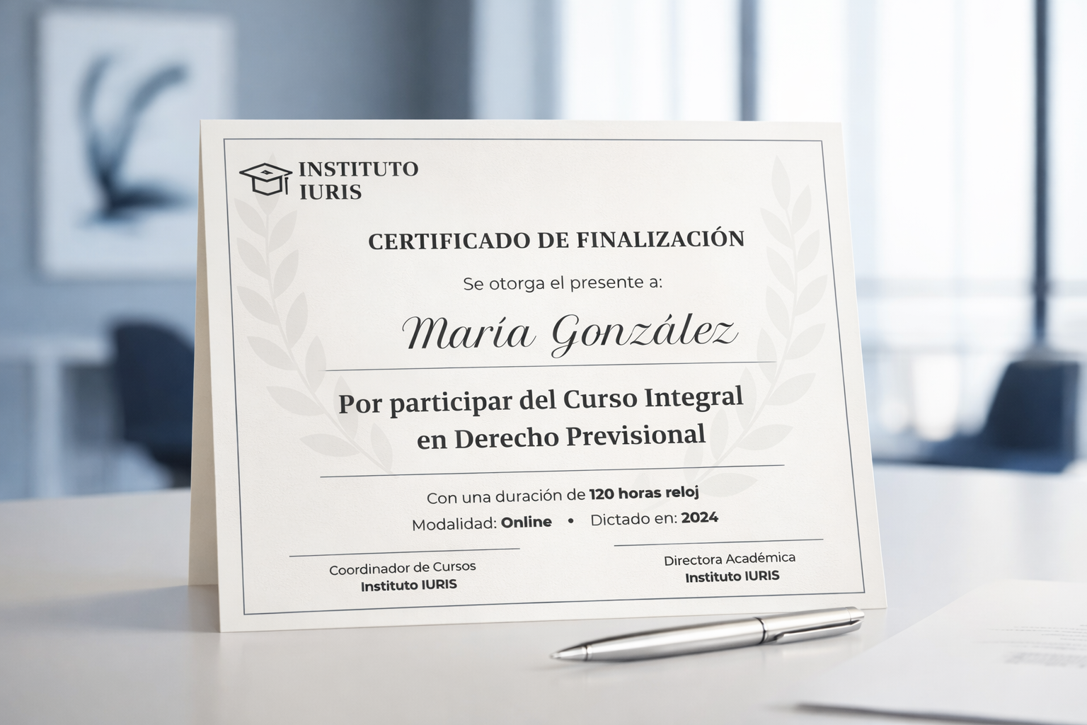 Cada curso incluye certificación institucional que acredita la formación realizada, fortaleciendo el perfil profesional y la capacitación continua en el ejercicio del derecho.